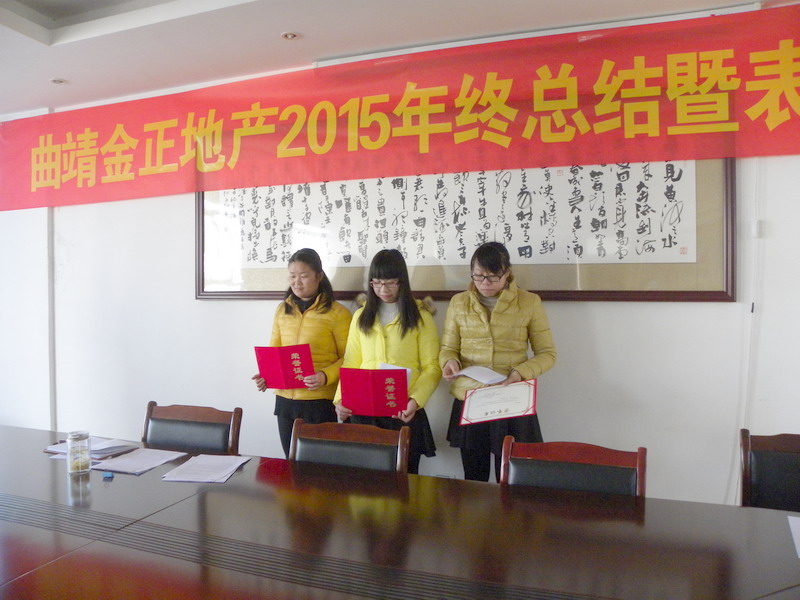 2016129,曲靖金正地產(chǎn)2015年終總結(jié)暨表彰大會在公司會議室順利召開。大會全面總結(jié)了曲靖金正集團在2015全年的各方面工作情況,對做得不足的方面也做了總結(jié)分析,同時明確了集團下一年度的工作方向和重點。針對各部門先進員工進行了分享和表彰,同時對公司優(yōu)秀個人工作總結(jié)進行了分享。