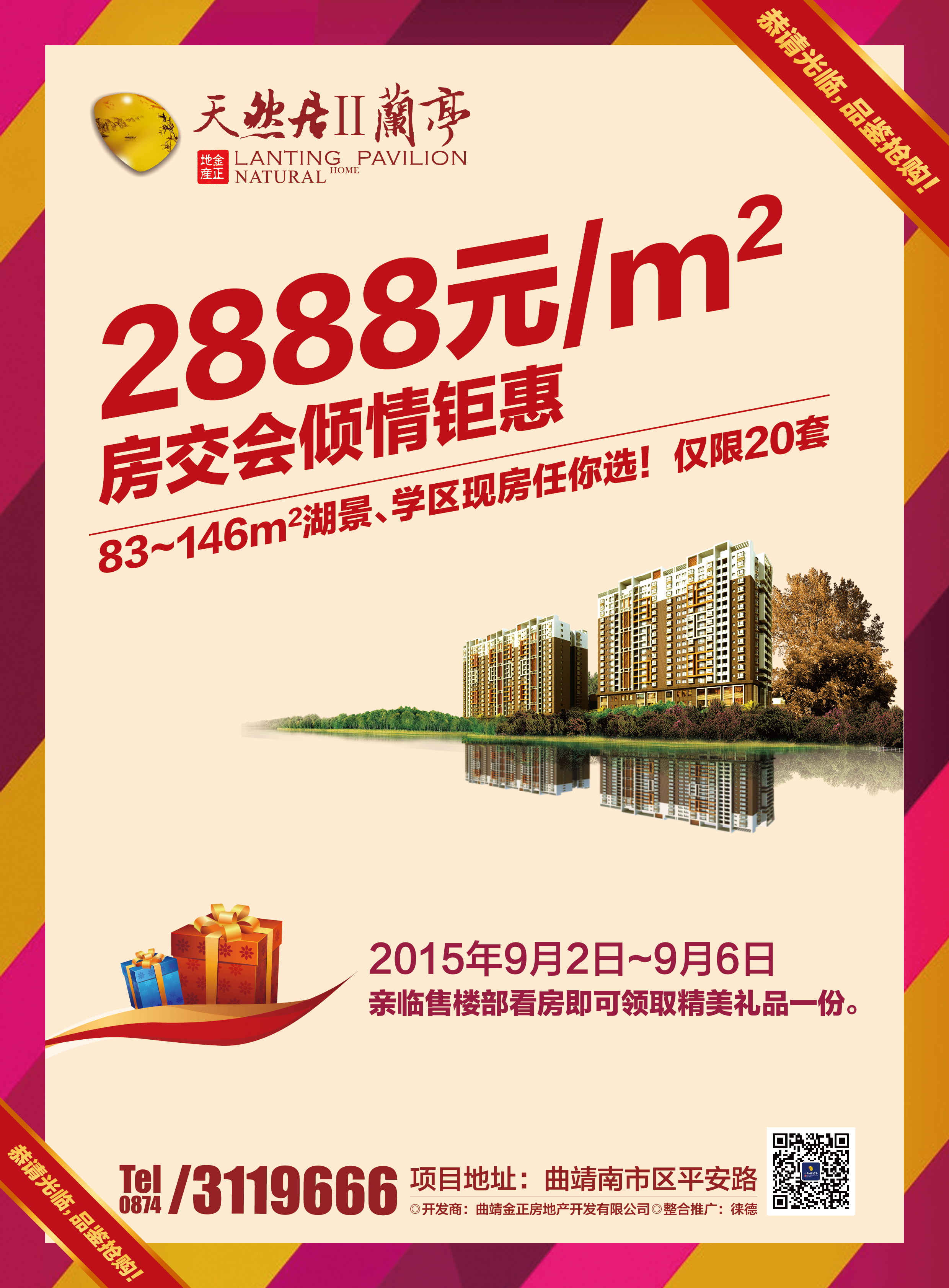 天然居Ⅱ蘭亭將在2015年9月2日至6日曲靖房交會期間傾情推出2888元/m²,不限戶型、樓層(僅限20套房源)的購房優(yōu)惠活動,房源有限,先到先得!